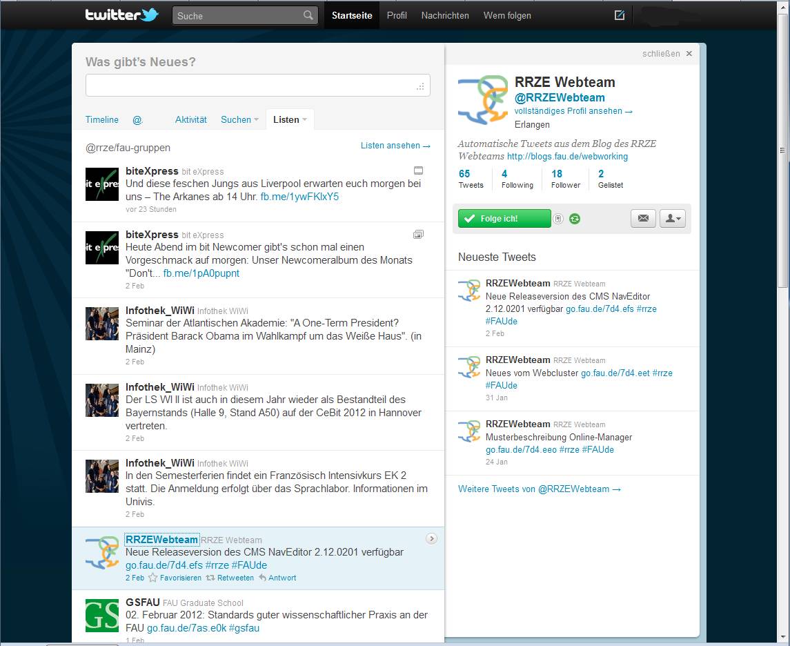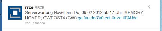 | RRZE | https://twitter.com/#!/rrze | Automatische Tweets zu aktuellen Meldungen des RRZE |