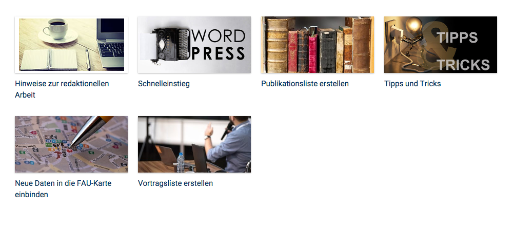 Die Tutorials sind als Schritt für Schritt Anleitung aufgebaut und richten sich an Redakteure und Webmaster von Webauftritten der FAU.