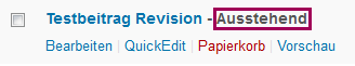 Der Redakteur sieht dann in der Beitragsübersicht, dass hier noch etwas zu tun ist: