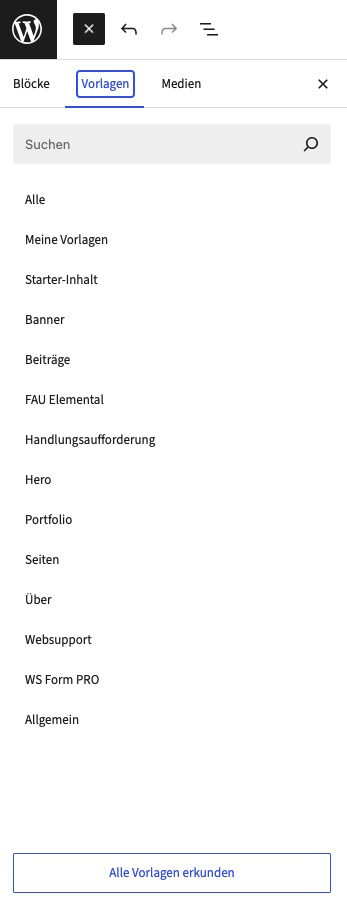 Vorlagen können im WordPress Backend über Design | Design | Vorlagen verwaltet werden.